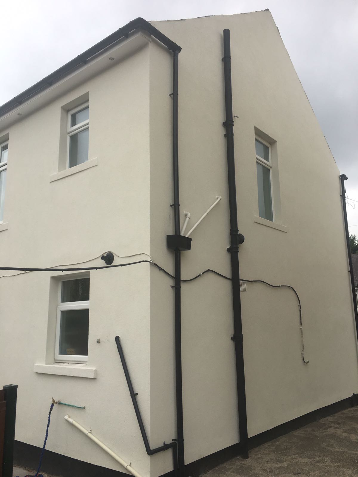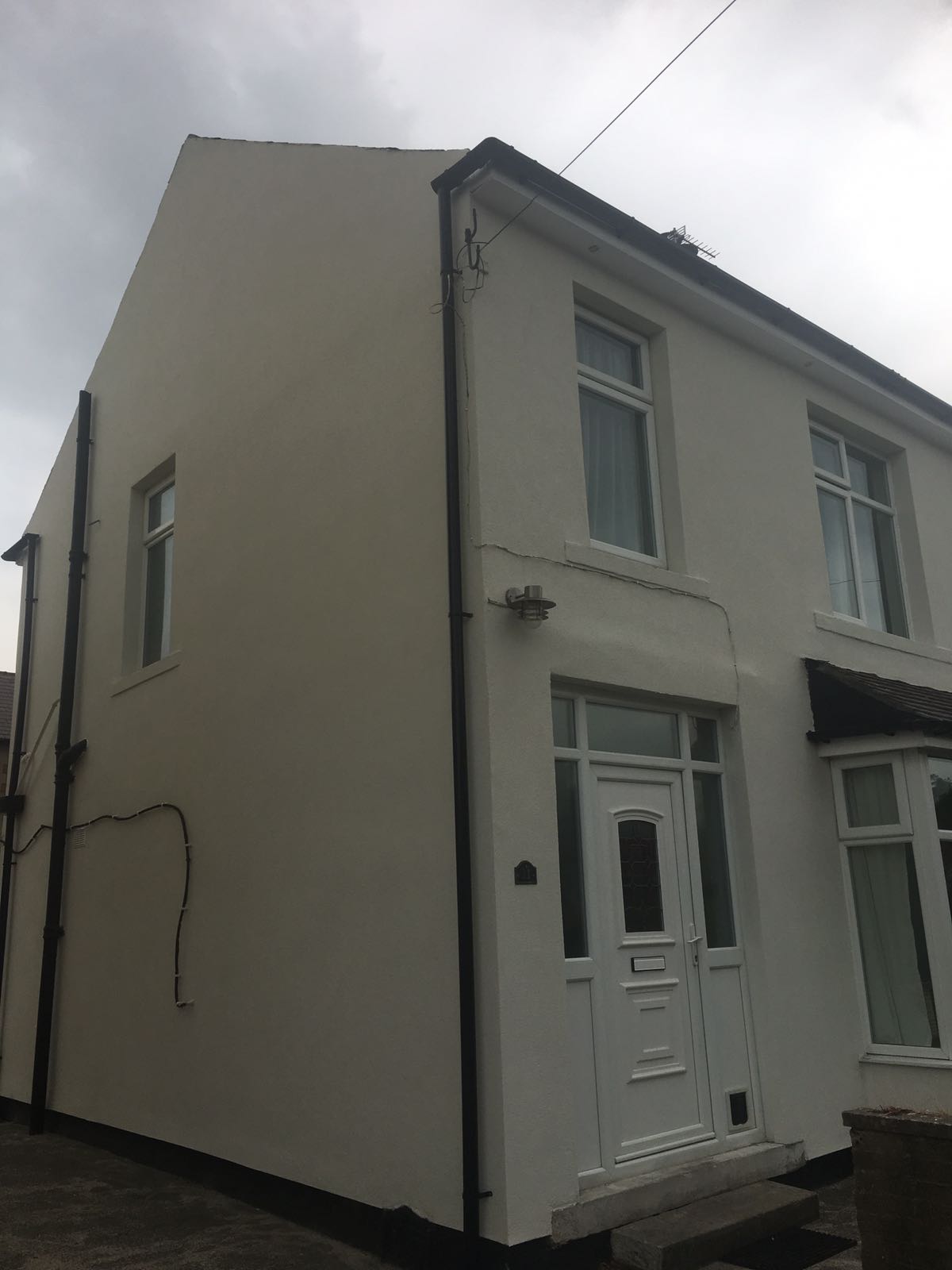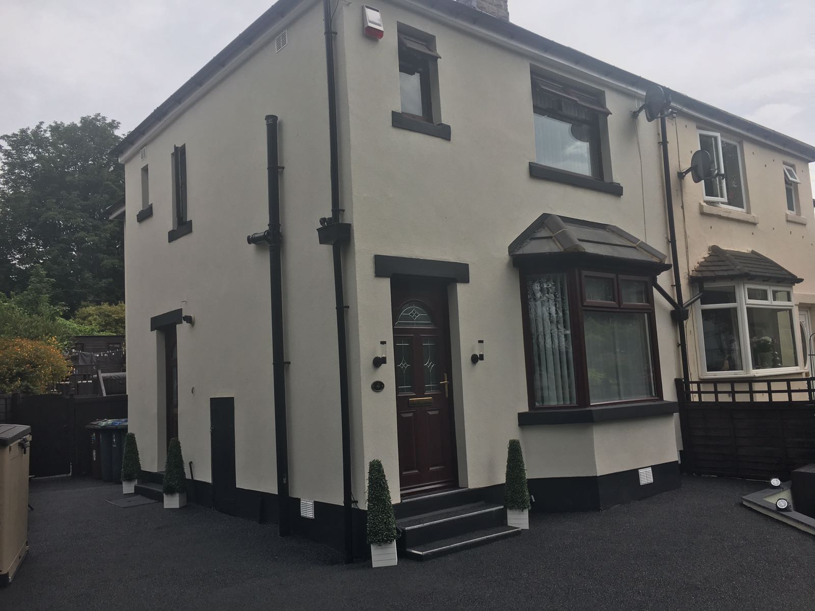 High quality colour silicone rendering work from a reliable rendering company in the Bradford area. West Yorkshire Rendering Specialists recently carried out this colour rendering work on a house in Bradford, West Yorkshire. If you require some quality rendering work on your home please contact West Yorkshire Rendering Specialists. We carry out small and large jobs, from sheds and walls to sports centres, WYRS have the capacity and tools to complete any job you want.