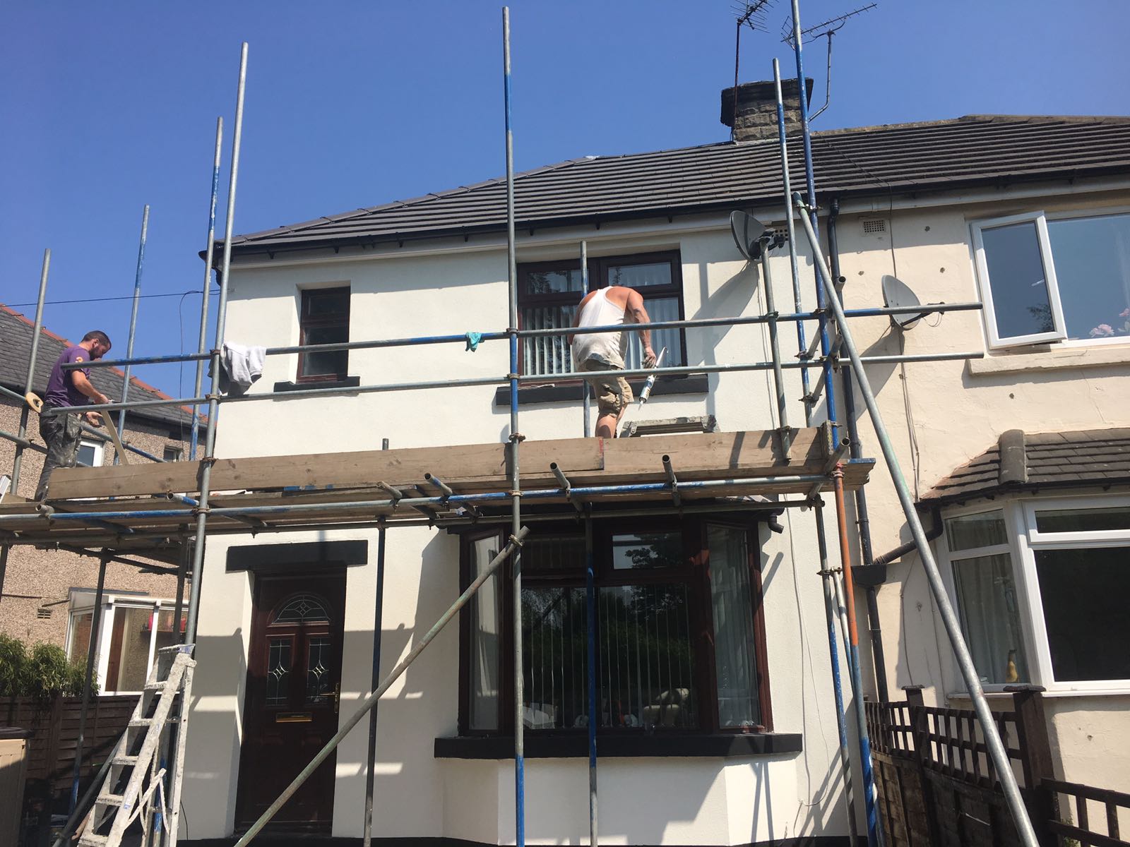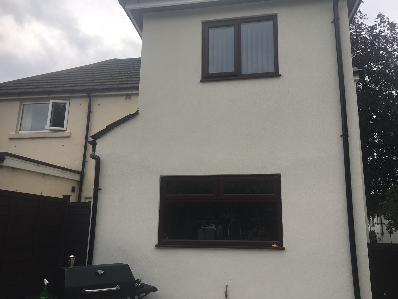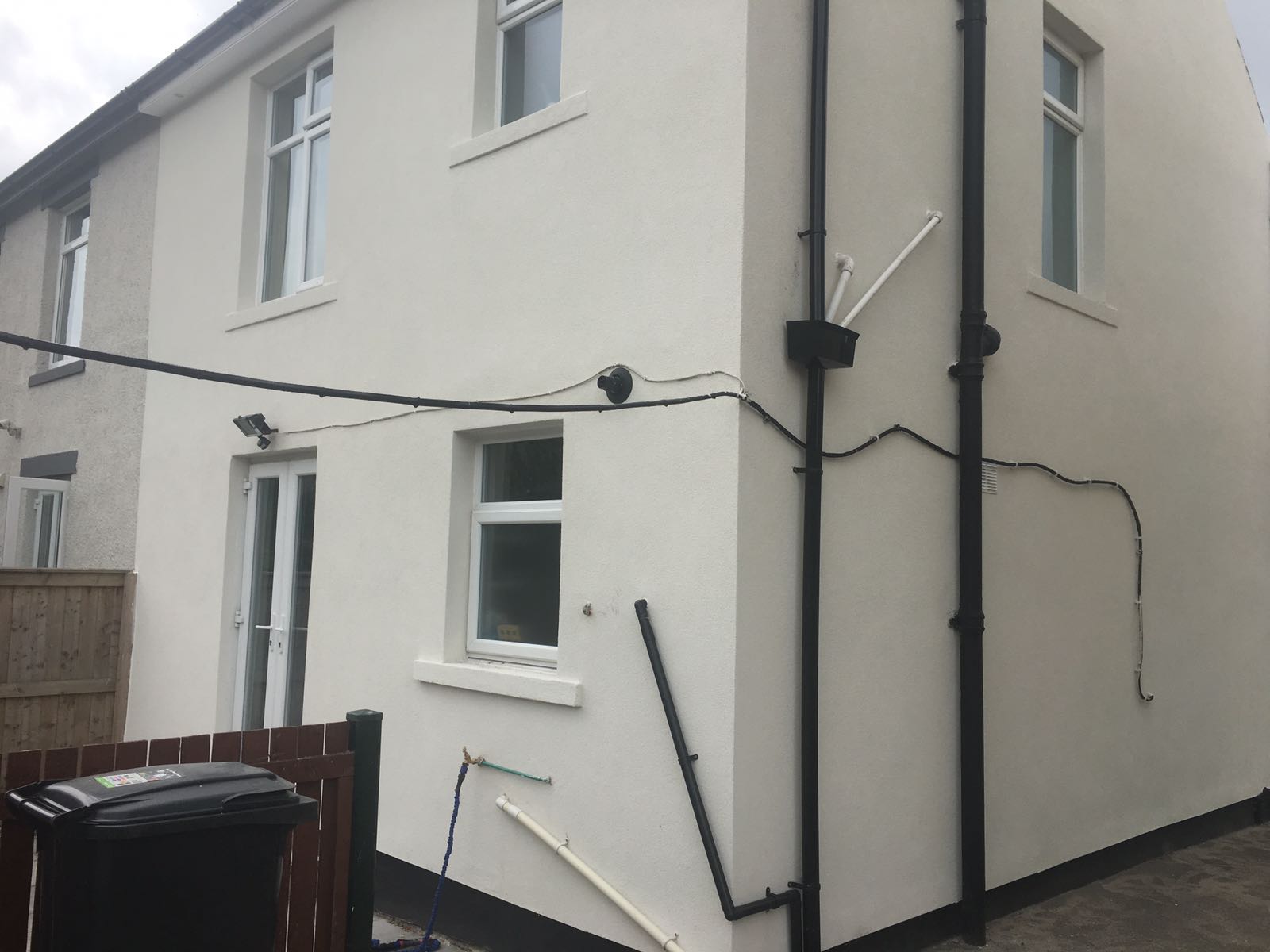 High quality colour silicone rendering work from a reliable rendering company in the Bradford area. West Yorkshire Rendering Specialists recently carried out this colour rendering work on a house in Bradford, West Yorkshire. If you require some quality rendering work on your home please contact West Yorkshire Rendering Specialists. We carry out small and large jobs, from sheds and walls to sports centres, WYRS have the capacity and tools to complete any job you want.