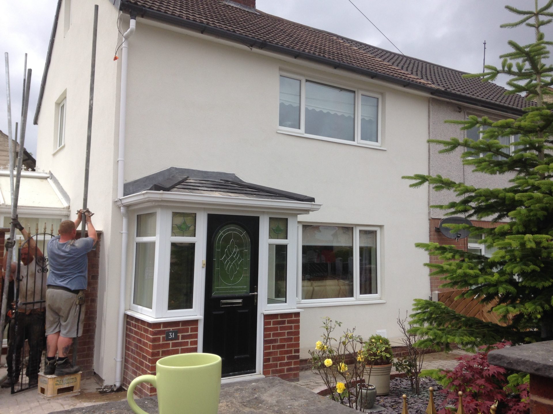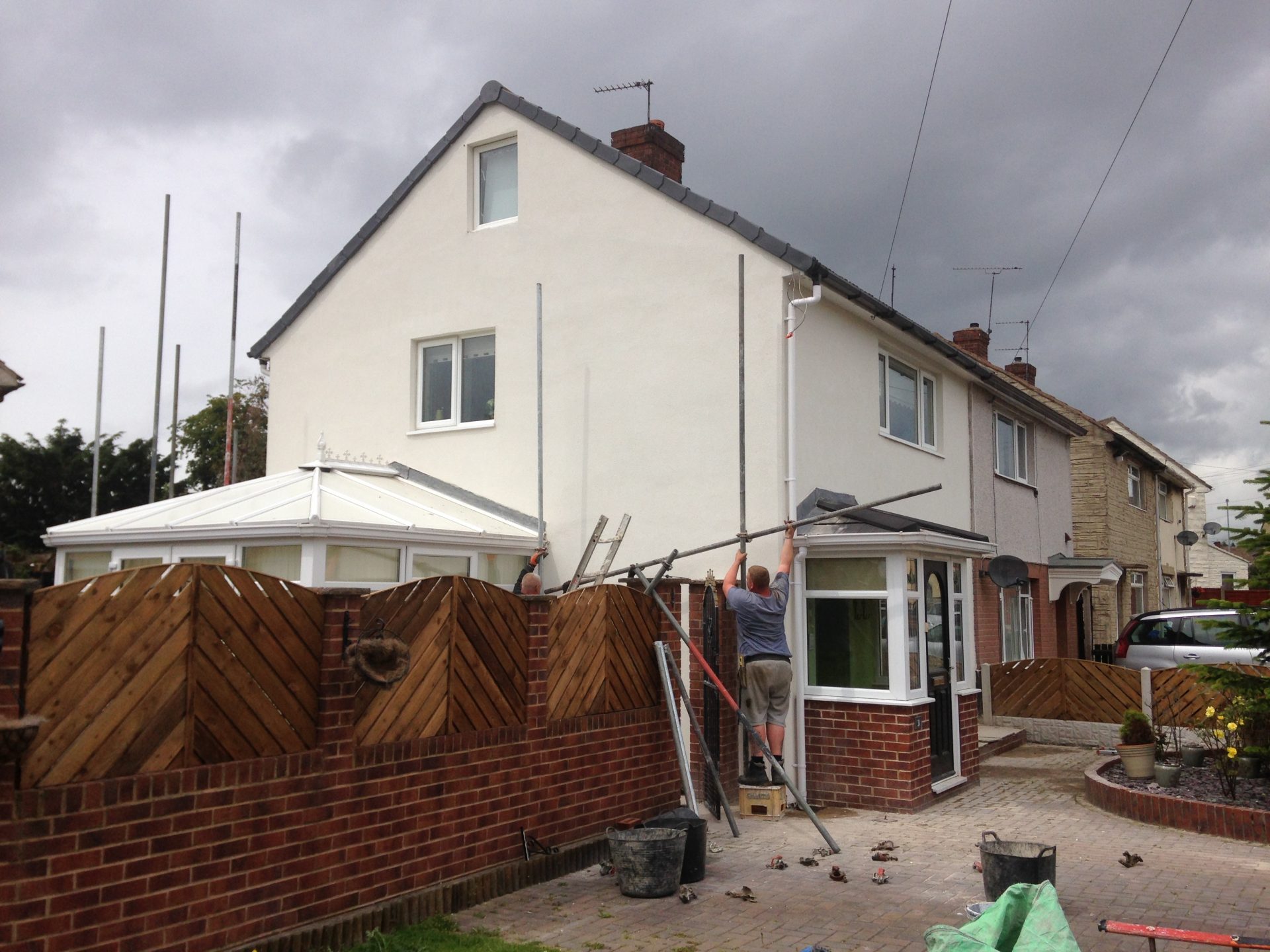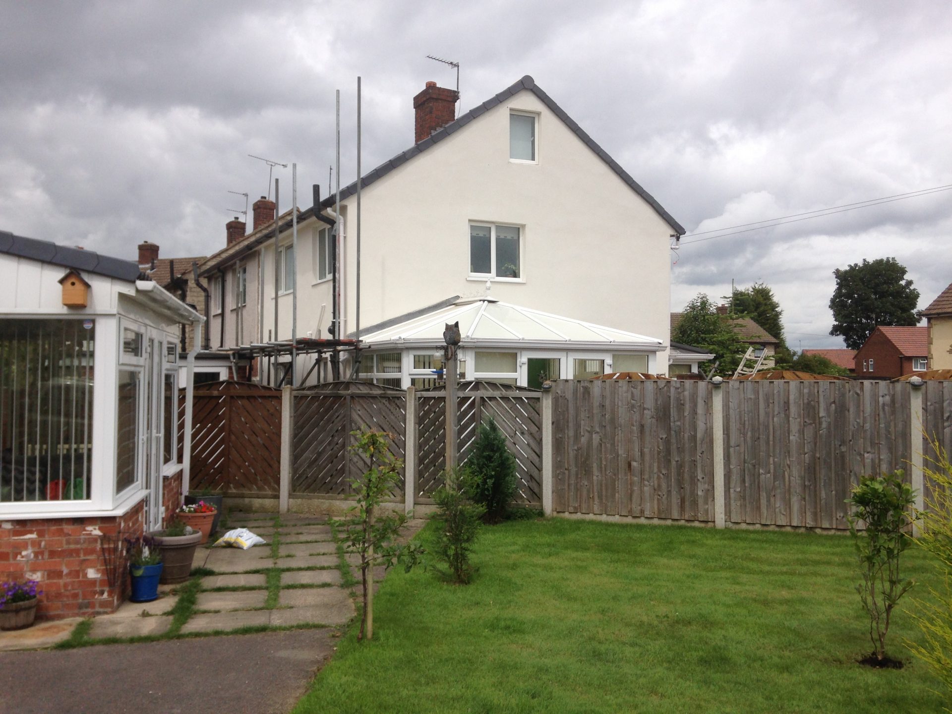High quality coloured render work from a reliable external coatings company in the Yorkshire area. West Yorkshire Rendering Specialists recently carried out this rendering work on a house in Baildon, West Yorkshire. Our Coloured Render system is maintenance free. Simply hose your wall and the colour will be good as new. No need to paint it again. If you require some pebble dashing or rendering work on your home please contact West Yorkshire Rendering Specialists. We carry out small and large jobs, from sheds and walls to tower blocks, WYRS have the capacity and tools to complete any job you want.