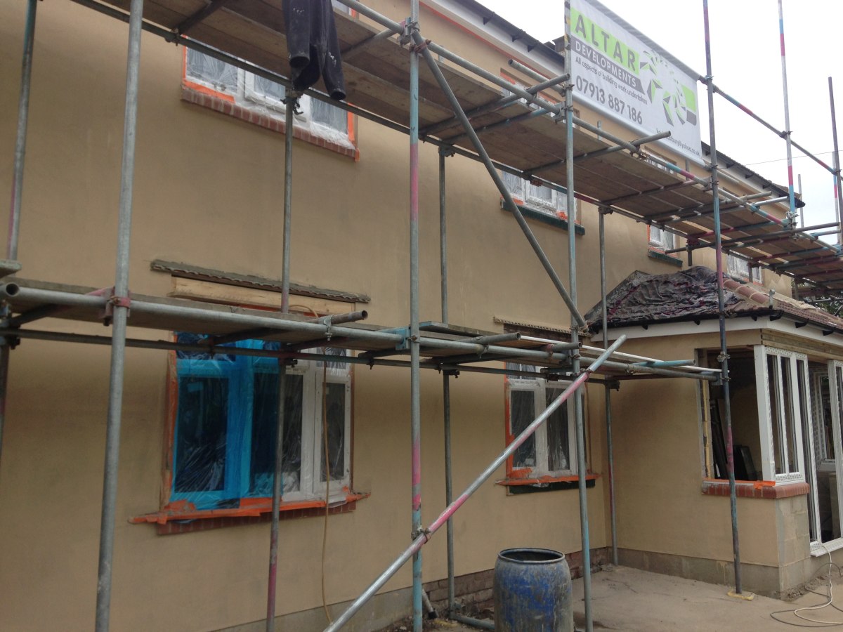 Another high quality colour waterproof silicone rendering job from a reliable external coatings company. West Yorkshire Rendering Specialists recently carried out this rendering job on a large house in Ilkley, West Yorkshire. The coloured render system we use is maintenance free and will keep its colour. All our work is guaranteed for 30 Years and comes with a 30 years manufacturer’s guarantee. You will not need to keep painting it as the colour is built into the render. If you require some rendering work on your home please contact West Yorkshire Rendering Specialists. We carry out small and large jobs, from sheds and walls to blocks of houses, WYRS have the capacity and tools to complete any job you want.