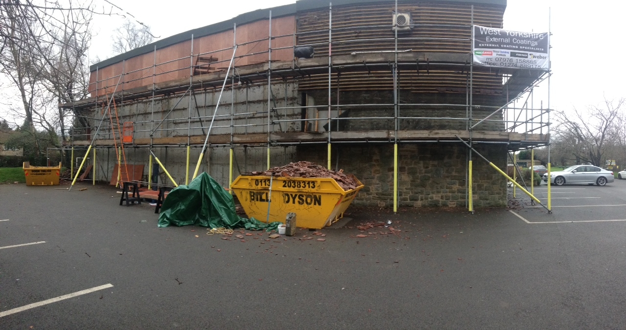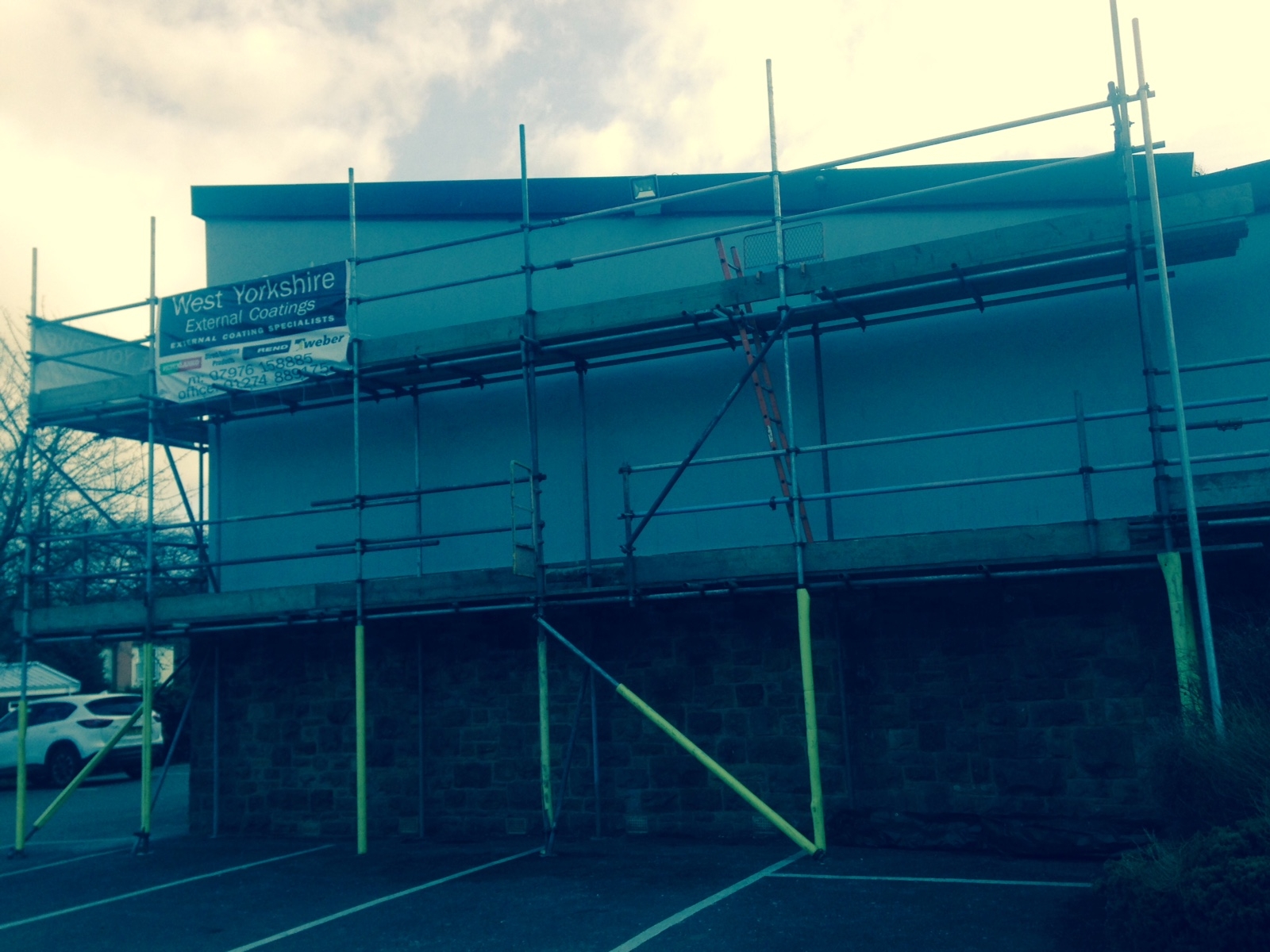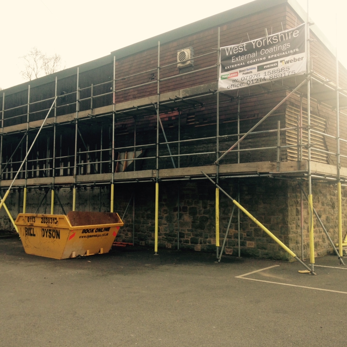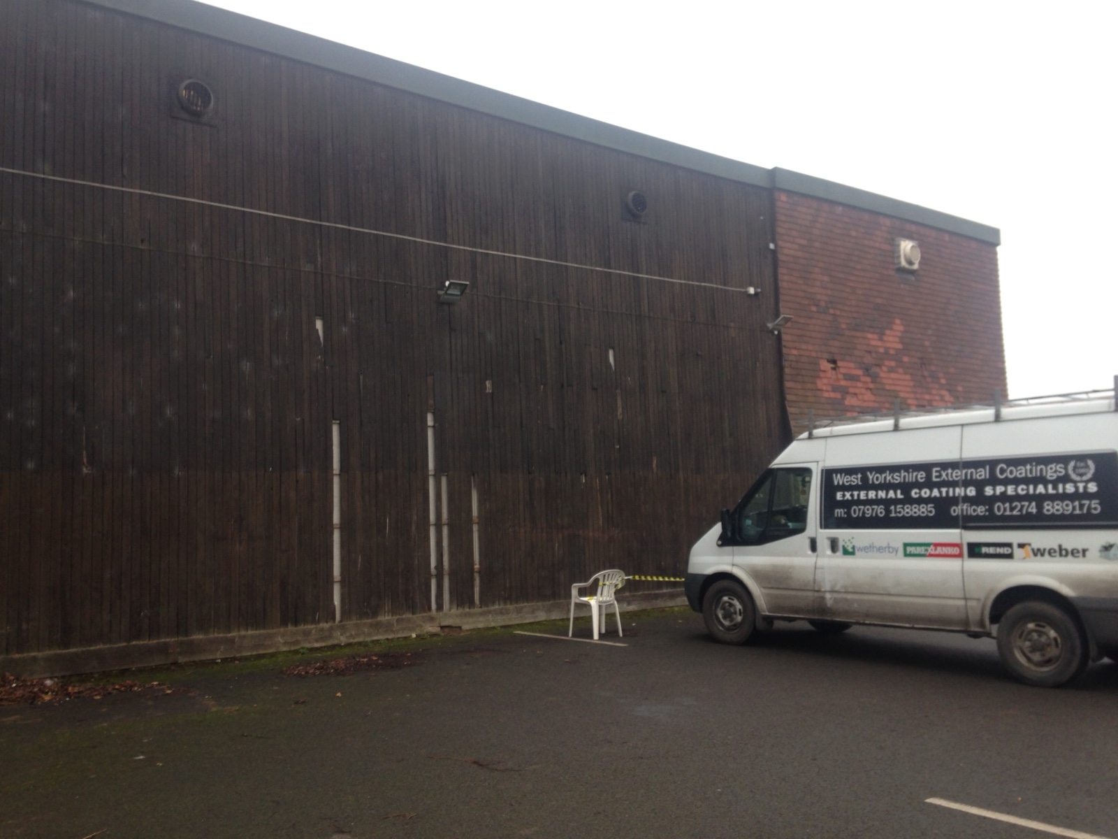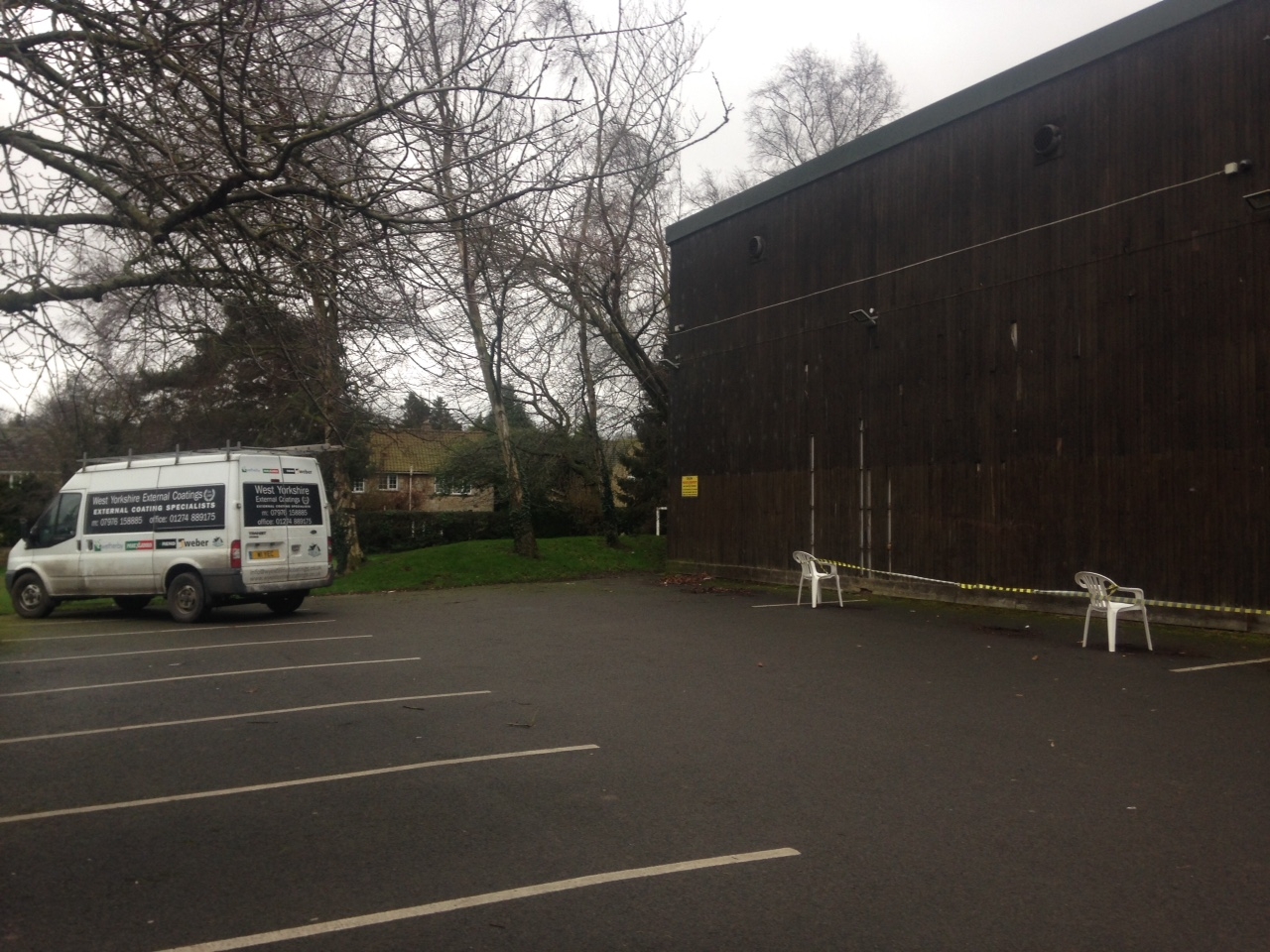 High quality silicone rendering work on Collingham Sports Club, Leeds, West Yorkshire. We first insulated the walls followed by a polymer mesh undercoat and then a coat of primer followed by colour waterproof silicone render.