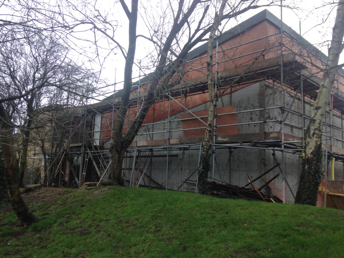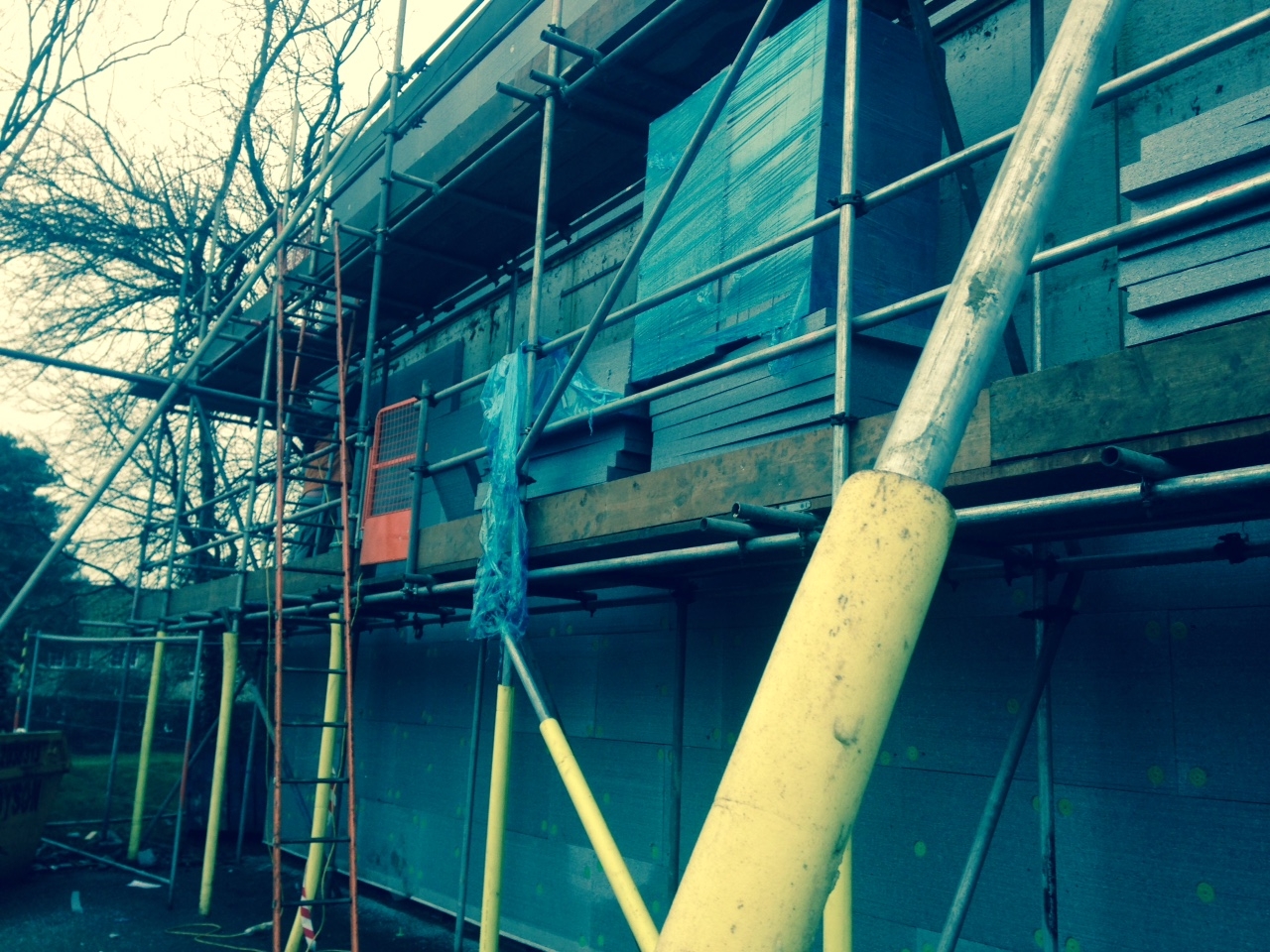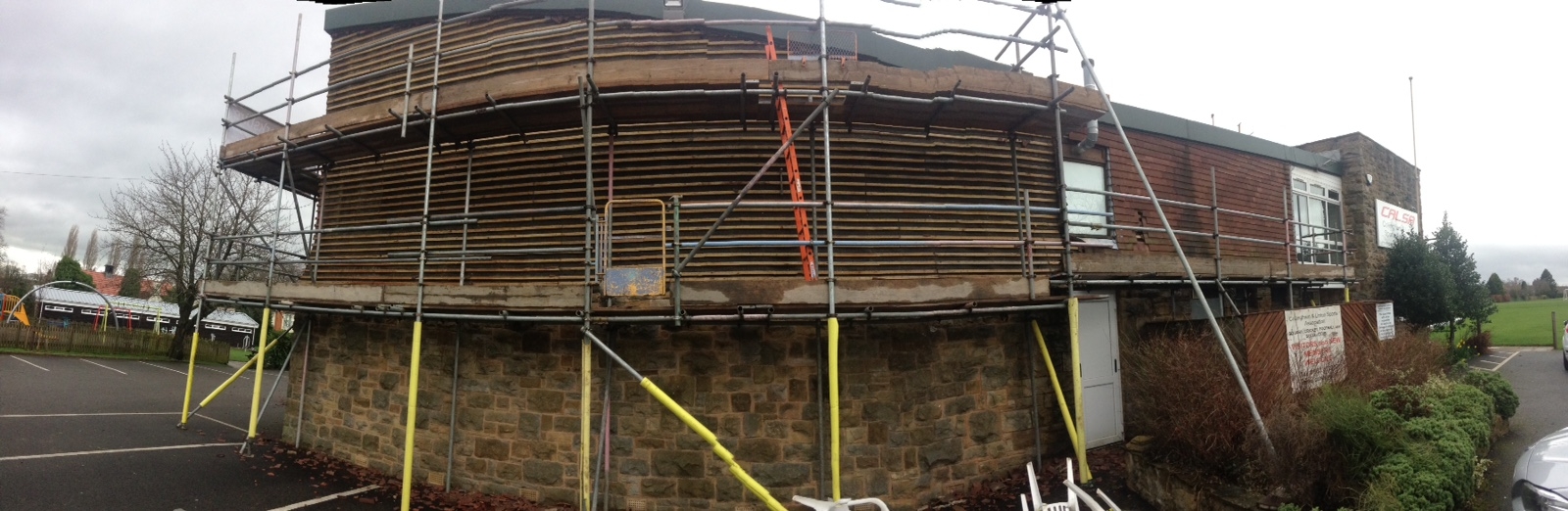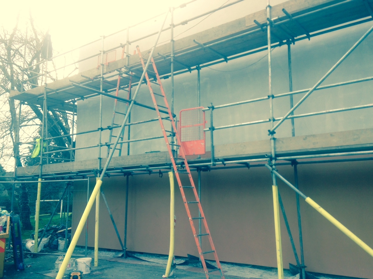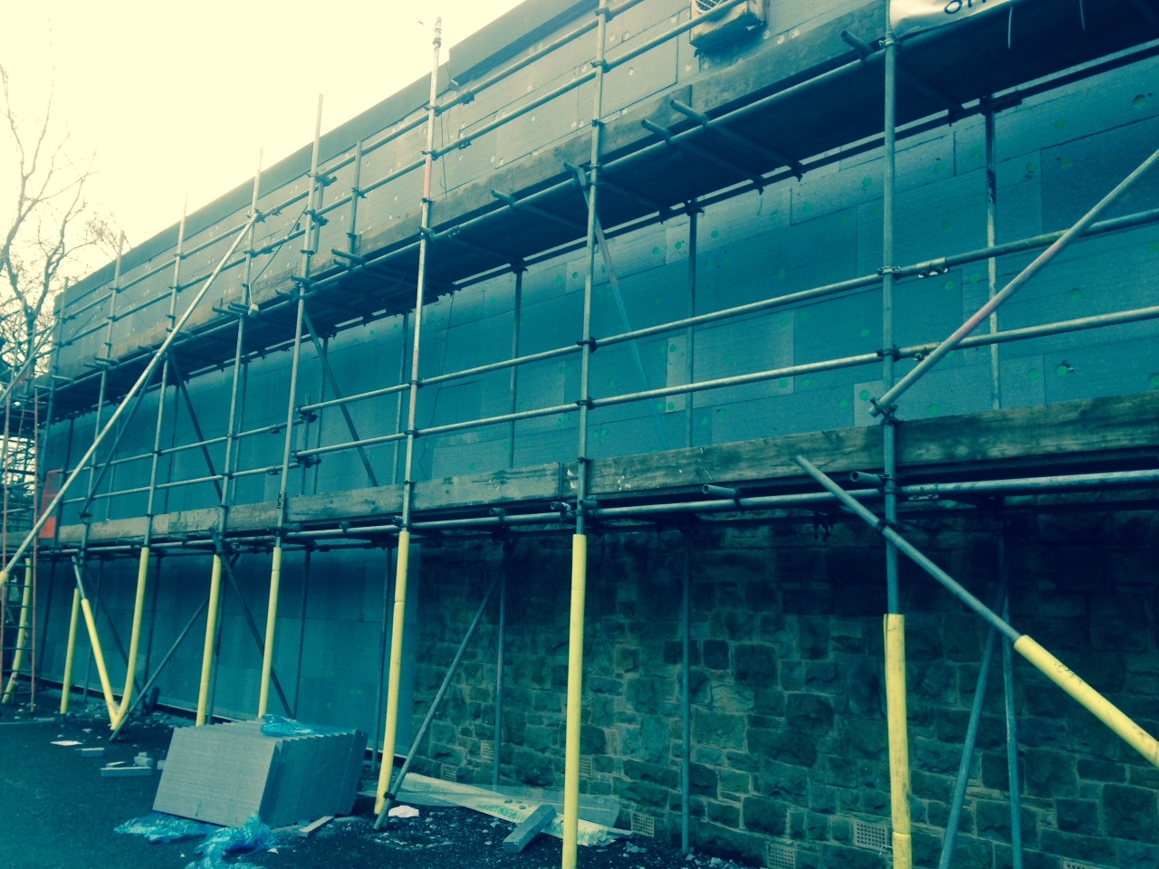 High quality silicone rendering work on Collingham Sports Club, Leeds, West Yorkshire. We first insulated the walls followed by a polymer mesh undercoat and then a coat of primer followed by colour waterproof silicone render.